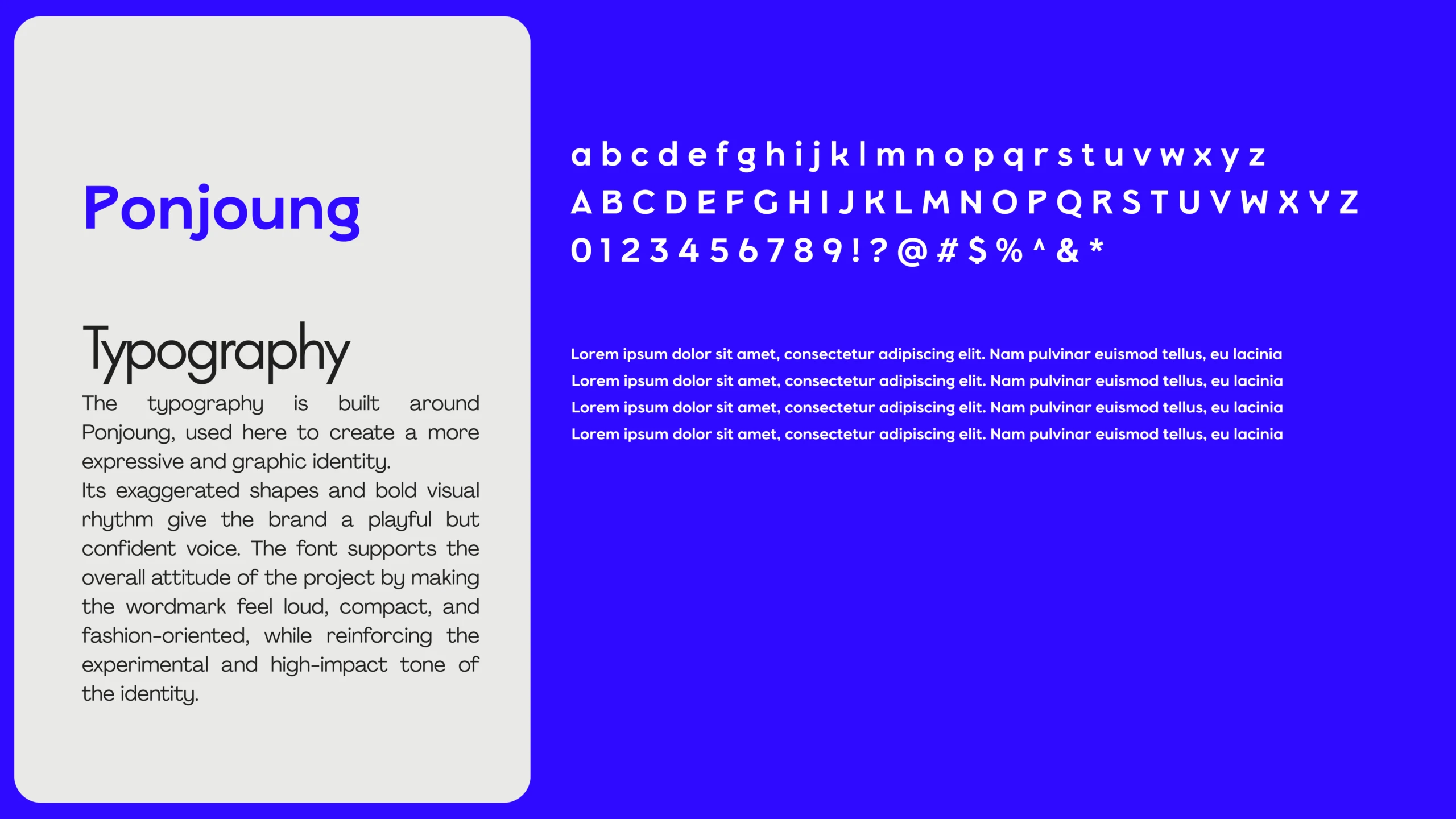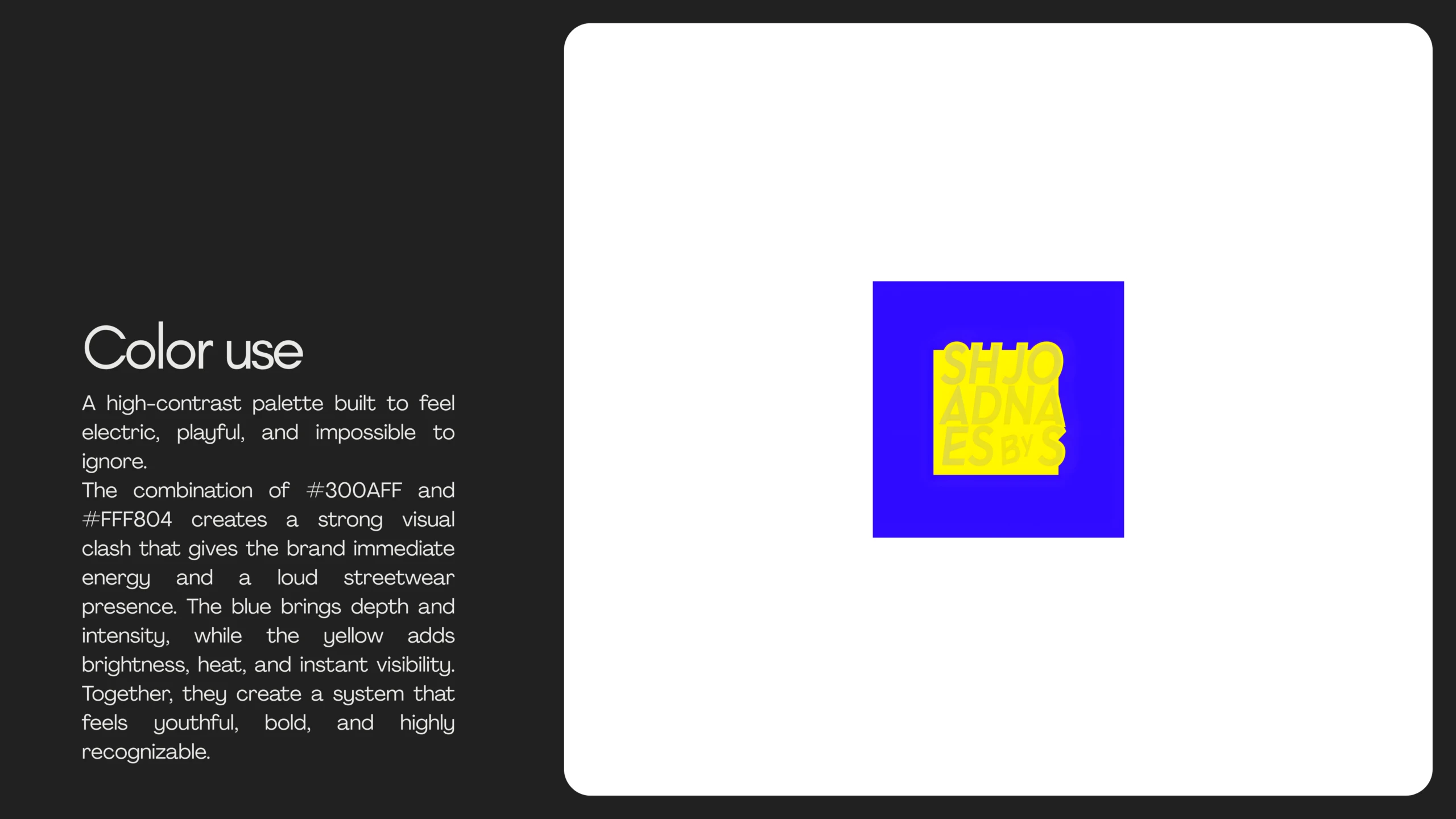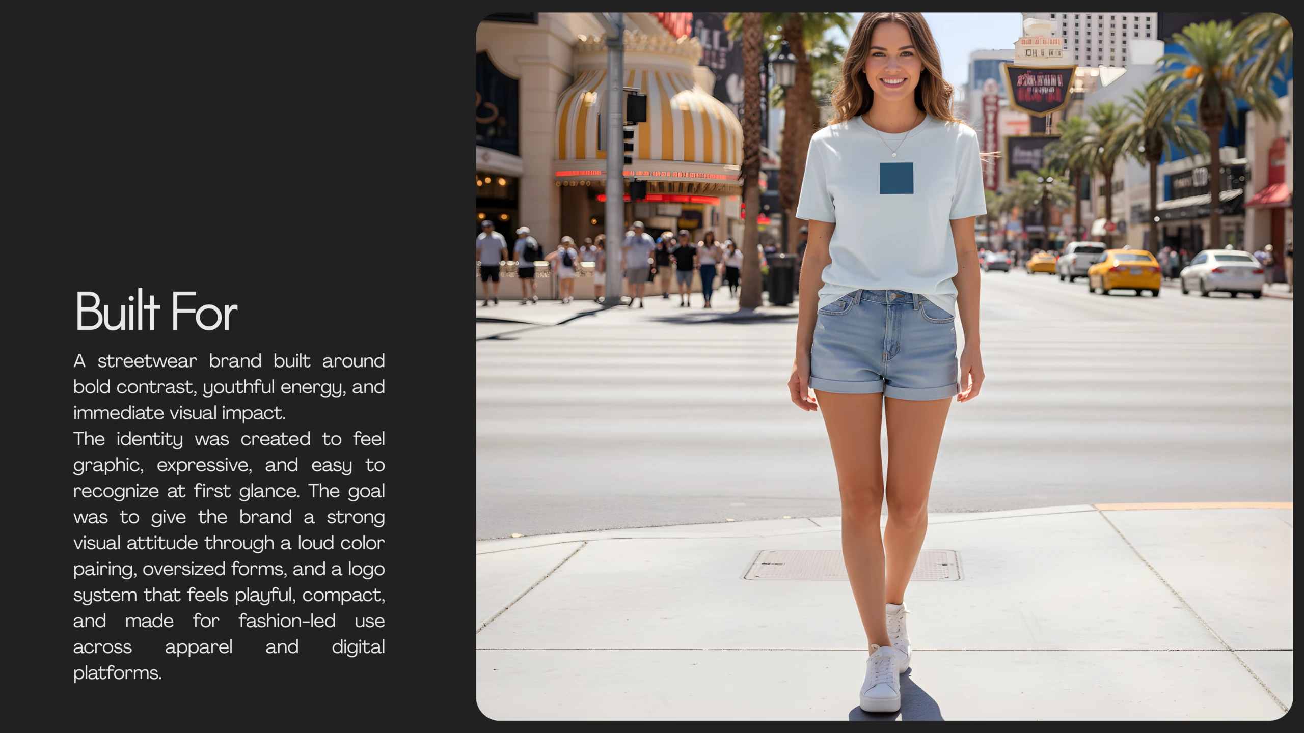 A bold visual identity created for a streetwear brand with a strong graphic attitude. Built around high-contrast color, oversized typography, and a sharp logo composition, the direction was designed to feel expressive, youthful, and instantly visible across apparel, digital use, and brand visuals.
